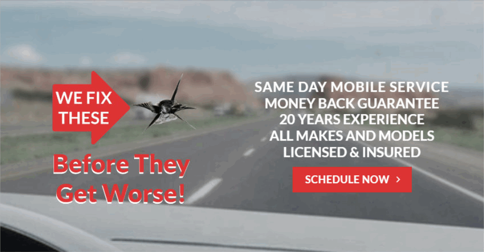 Windshield repair is a permanent process that forces the air out of the glass break and fills it with a curable liquid resin. The resin will bond to the break that will prevent it from spreading further and also improve the clarity. A completed repair will look like a minor blemish or a speck on your glass. Depending on the type of break and severity of the impact, some repairs will be almost totally invisible but others will show only minor improvement in appearance. We only use the Highest Quality Materials for all our repairs. Windshield repair is economical, safe and effective. Most repairs can be completed within thirty minutes.